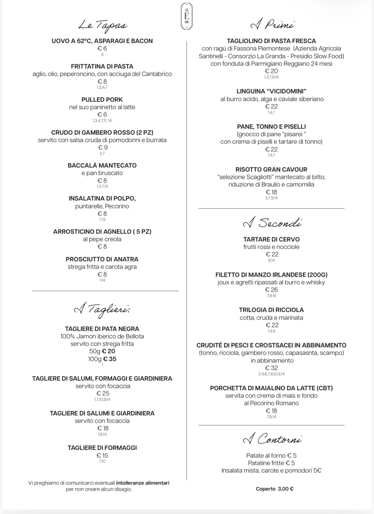 MENU À LA CARTE